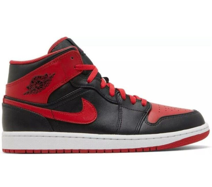 Air Jordan 1 Mid "Alternate Bred" är en omtolkning av den klassiska "Bred"-färgsättningen. Skon har ett överdrag av svart läder, medan röda detaljer syns på tårboxen, snörningen, ankelfliken, socklining, insoles och de ikoniska Nike Swooshes på sidorna. Den vita mellansulan ger en snygg kontrast till de starka färgerna, och den röda gummisulan säkerställer bra grepp. För komforten finns en vadderad ankelflik och en Air-Sole-enhet för dämpning【216†source】.