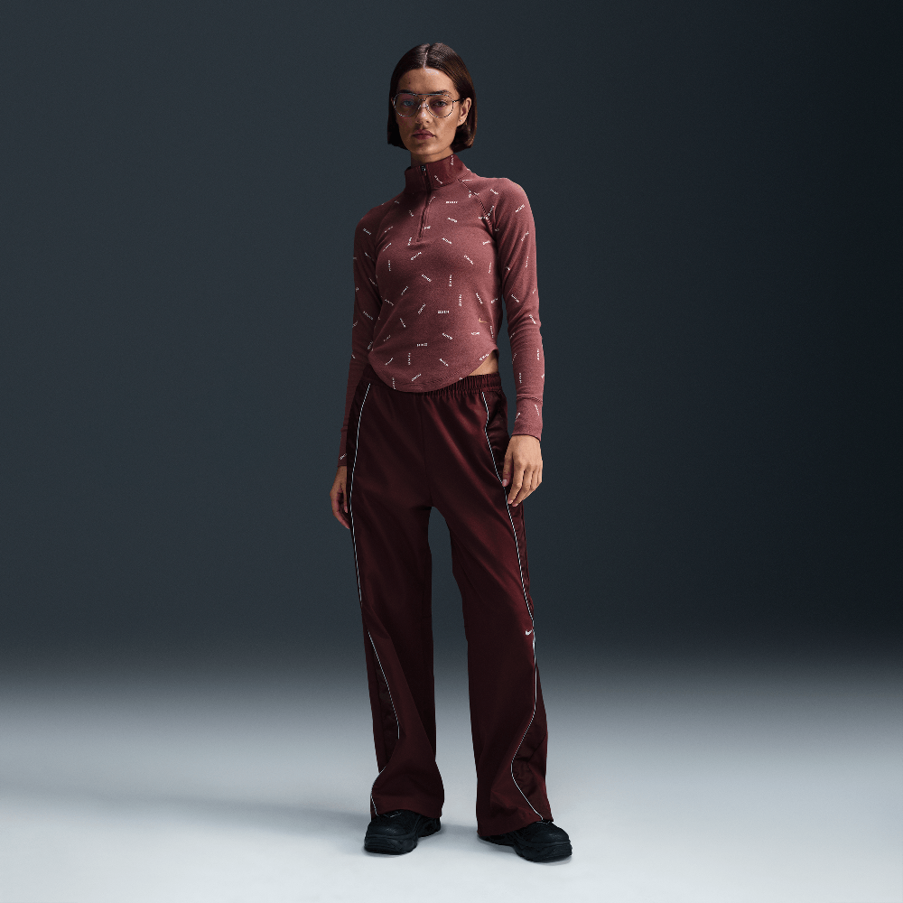 Nike Sportswear Collection Women's Slim 1/2-Zip Long-Sleeve Logo Top Red Sepia/Light Orewood Brown/Red Sepia